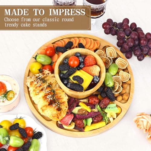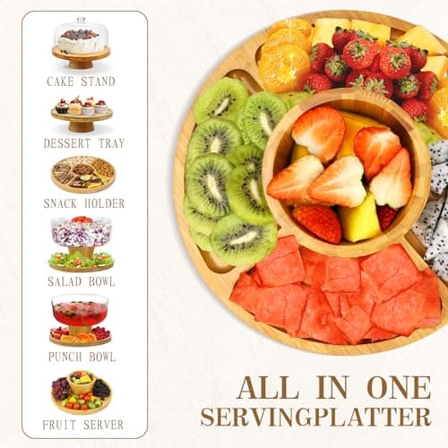 Bamboo Cake Stand with Lid, 6 in 1 Multifunctional Round Shatterproof Cake Plate Serving Platter, Cake Holder, Veggie Tray, Salad Bowl, Fruit Bowl, Donut Stand, Nachos Plate, Dessert Table Display