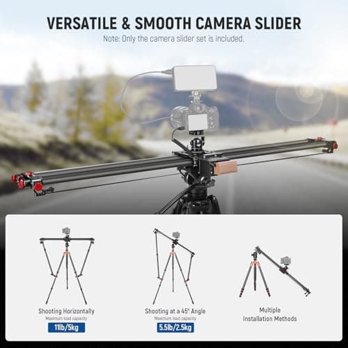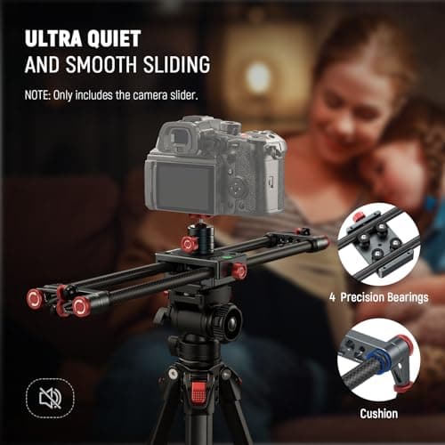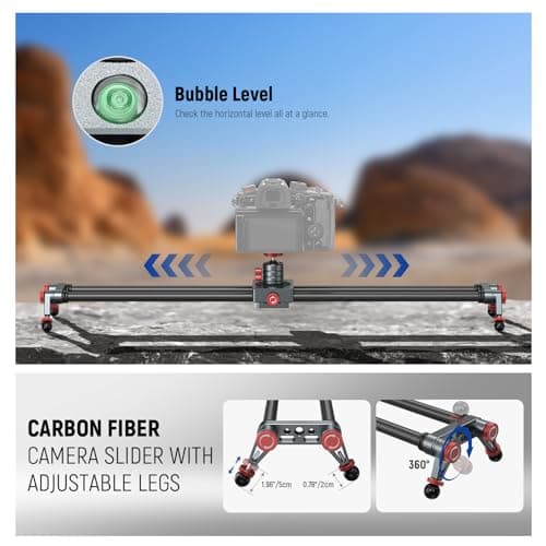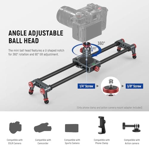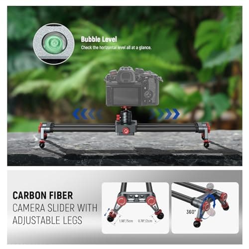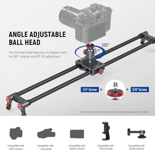 NEEWER 16in/40cm Carbon Fiber Camera Slider with 360° Ball Head/Phone Clamp/Action Camera Mount, Dolly Rail Track with 4 Bearings & Adjustable Legs, Compatible with GoPro Insta360 iPhone Android, CS1M