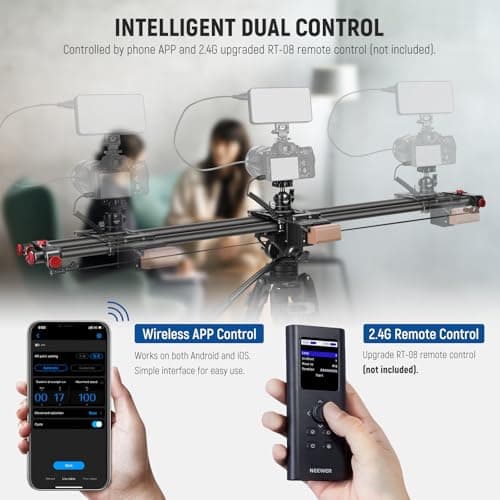 Start with the workflow that actually drives the purchase. If repeatable motion and remote adjustment are the priority, go straight to motorized and app-controlled camera sliders. If you specifically care about time-lapse sequences, programmed motion, or controlled repeat passes, the better first click is motion-control kit camera sliders.