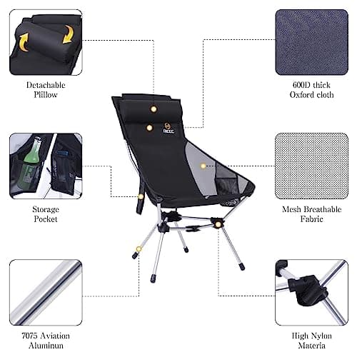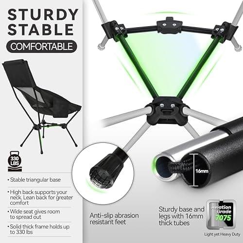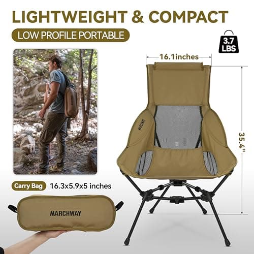 MARCHWAY Lightweight Folding High Back Camping Chair with Head Support, Stable Portable Compact for Outdoor Camp, Travel, Beach, Picnic, Festival, Hiking, Backpacking (Highback Khaki)