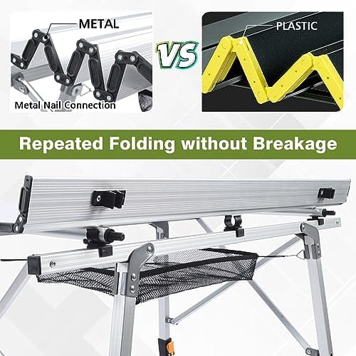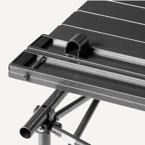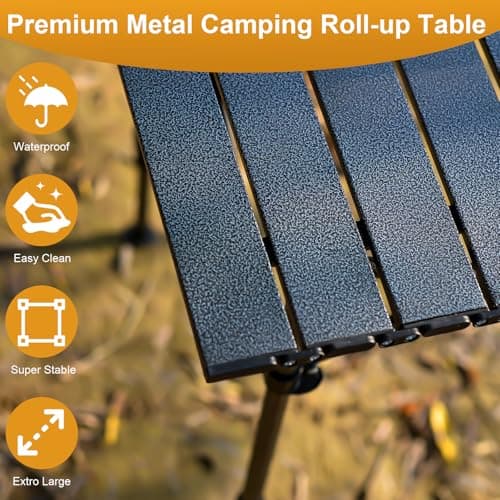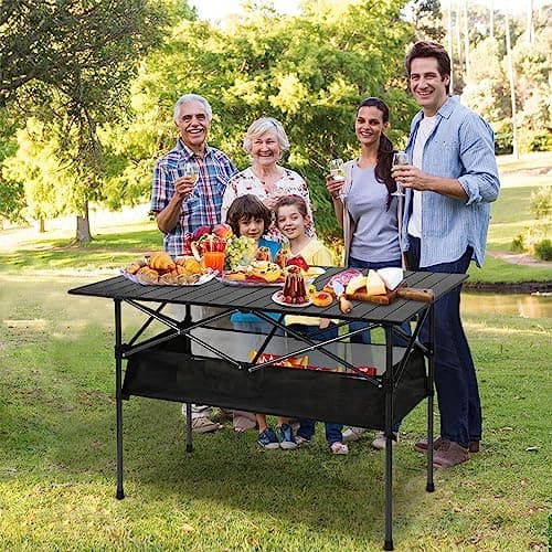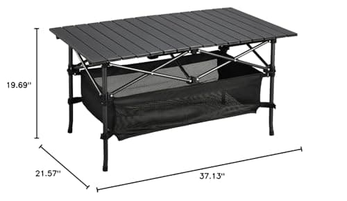 Audoyon Folding Camping Table, Outdoor Roll-up Table Height Adjustable & Portable Metal Camp Grill Table for Picnic, BBQ, Party, Backyard, Beach, Mesh Storage and Carry Bag (Ash Black, 37.4'' Large)