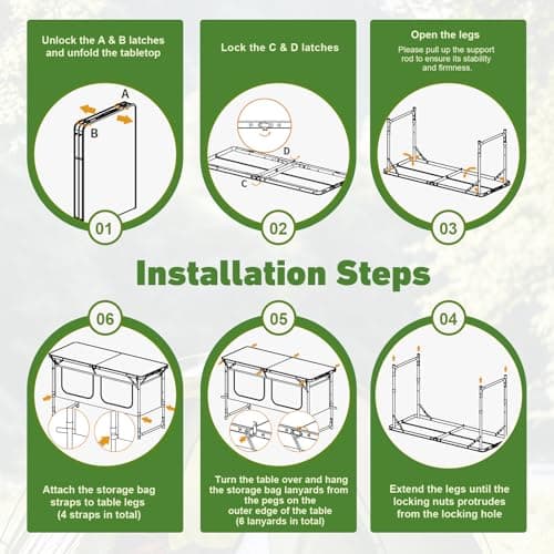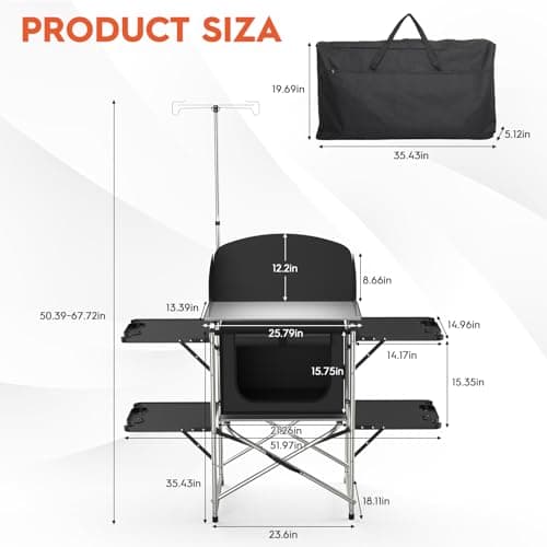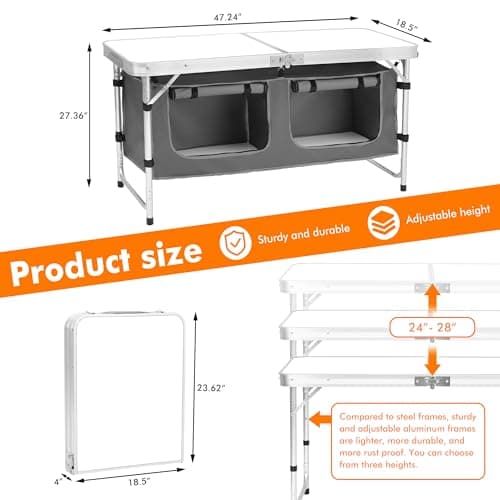 VEVOR Camping Kitchen Station, 3 Adjustable Height Folding Outdoor Camp Cooking Table with Storage Organizer, Quick Set-up for Patio BBQ Picnic Glamping Traveling