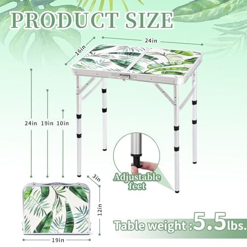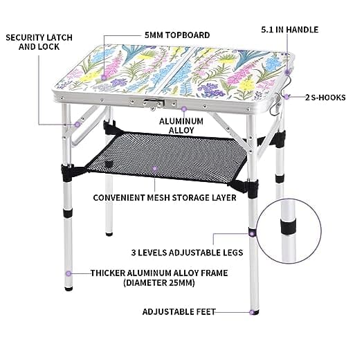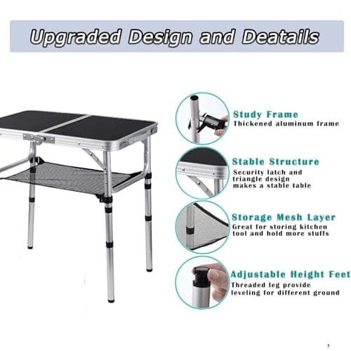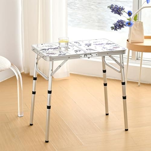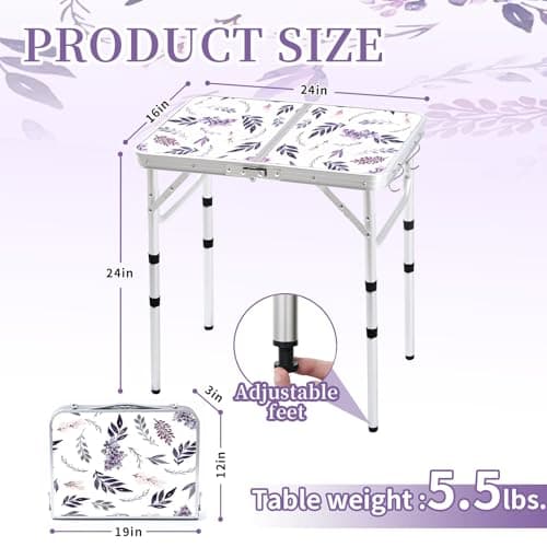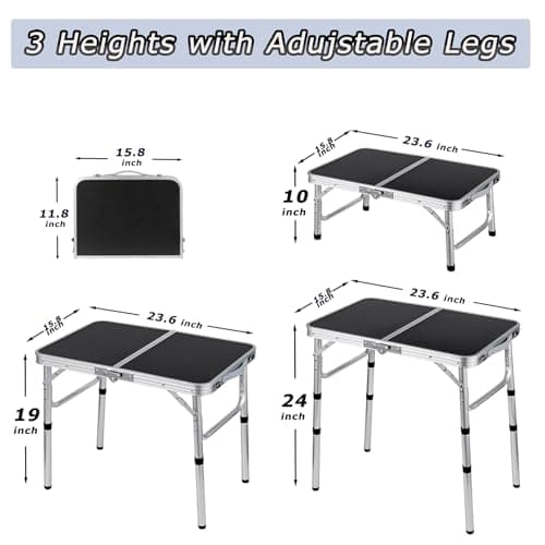 Folding Table Small Lightweight Portable Aluminum Camping Table Mini Foldable Table with Adjustable Height Legs for Picnic Cooking Beach, 2ft and 3 Heights
