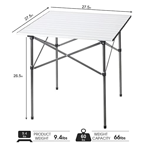 PORTAL Lightweight Aluminum Folding Square Table Roll Up Top 4 People Compact Table with Carry Bag For Camping, Picnic, Backyards, BBQ (White)