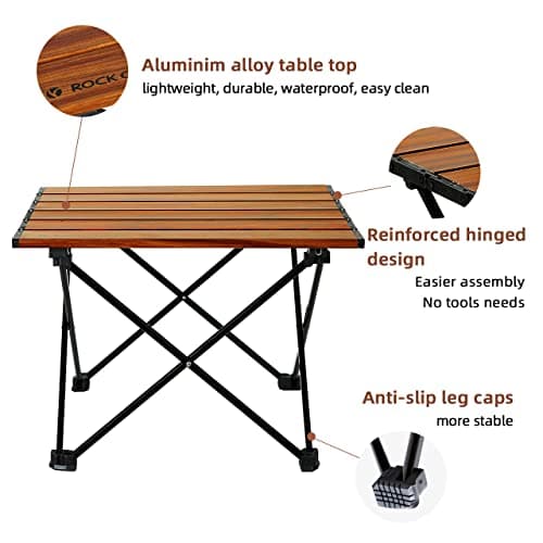 Grope Portable Camping Table with Aluminum Table Top, Folding Beach Table Easy to Carry, Prefect for Outdoor, Picnic, BBQ, Cooking, Festival, Beach, Home Use (Black-S)
