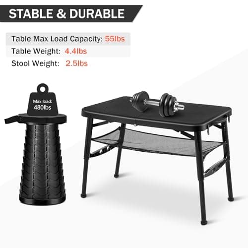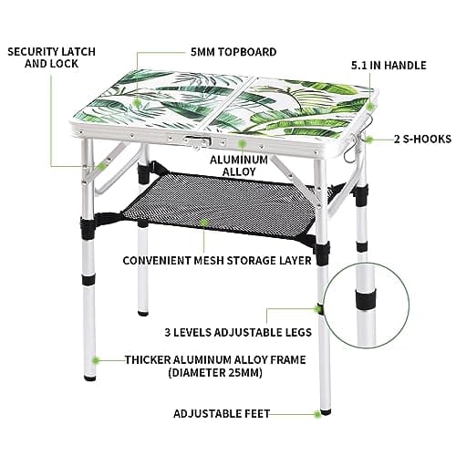 ONETIGRIS Dipper Camping Table, Lightweight Portable Folding Table with Mesh Storage Net, High/Low Options, Ideal for Camping, Hiking, Tailgating, Beach, Picnic, Travel, Backyard
