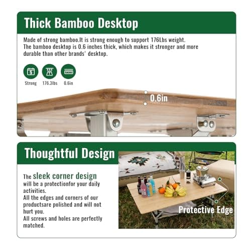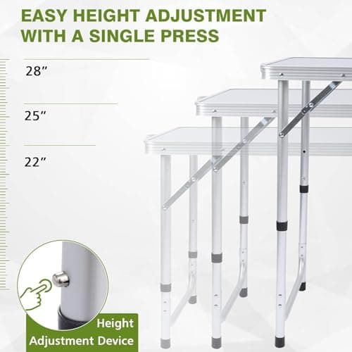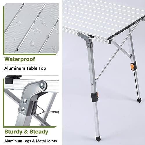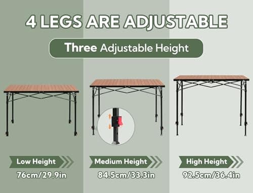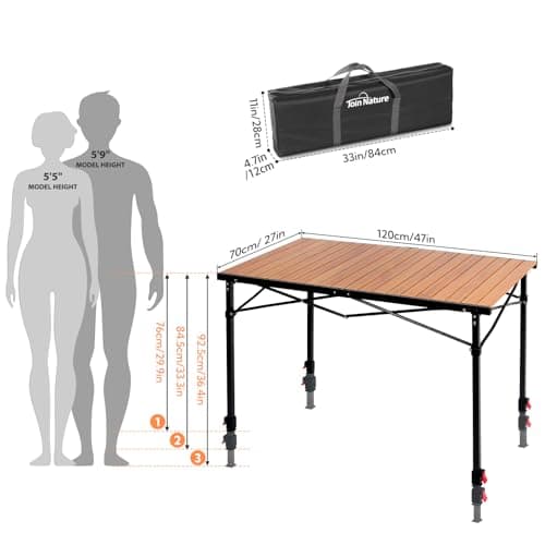 Join Nature Portable Outdoor Adjustable Height Camping Table, Large for 2-6 Person, Foldable Roll-up Aluminum Camp Table with Carry Bag for Picnic, Camp, Sturdy, Stable, Loads 220 Lbs
