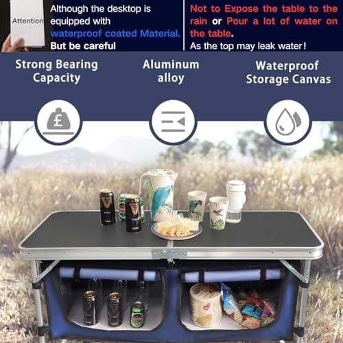 ALPHA CAMP Folding Camping Table, Portable Roll-up Table with Adjustable Height, Large Storage Bag and Carrying Bag, Tall Aluminum Table for Indoor & Outdoor Picnic BBQ Backyards Beach