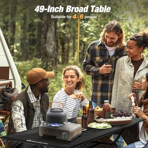 WARMOUNTS Folding Camping Table Adjustable Heights, 49″ Wide Tabletop Portable Camping Table, Aluminum Roll-up Camping Table w/Carrying Bag for Picnic, Grill, Fishing, Beach, Suitable for 4-6 People