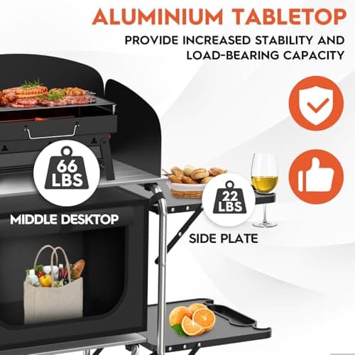 JOUYEK Camping Table, Aluminum Folding Camping Cook Station with Windshield, Upgrade Light Stand, Storage Bag, Quick Installation for Outdoor, Picnic, Cooking