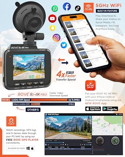 ROVE R2-4K Dash Cam Built-in WiFi 6 GPS Car Dashboard Camera Recorder with UHD 2160P, 2.4" IPS Screen, 150° Wide Angle, WDR, Night Vision