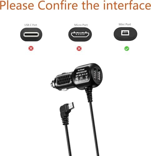 Dash Cam Power Cord Adapter Mini USB Car Charger Cable Compatible for Rexing V1V1P ProV5V3,Byakov S6,CHORTAU B-T13 B-T20 B-T25,Pruveeo D30 D40,Rove R2-4K Dash Cam Power Supply (USB Mini Port)