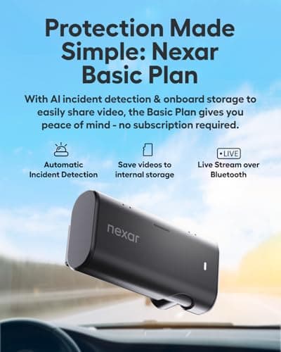 Nexar Beam GPS Dash Cam - Dash Camera for Cars with 32GB SD Card Included Unlimited Cloud Storage 24H Parking Mode Dash Cam for Cars. Wireless Car Camera with 1-Year Nexar Classic App Subscription