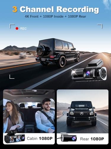 3-Channel 4K Dash Cam with WiFi, 4K+1080P+1080P Front/Inside/Rear, Night Vision, Parking Mode, 64GB Card Included