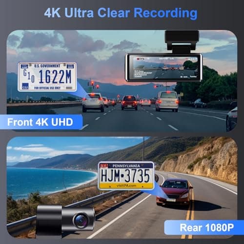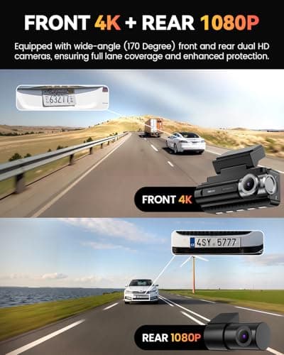 4K Dash Cam Front and Rear - with GPS and WiFi - Night Vision, 24H Parking Mode, Compact Design, Easy USB Setup, 170° Wide-Angle, Free 32GB SD Card, for Cars, SUVs, Trucks