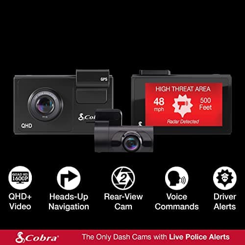 Cobra Smart Dash Cam + Rear Cam (SC 200D) – QHD+ 1600P Resolution, Built-in Wi-Fi & GPS, Voice Commands, Live Police Alerts, Incident Reports, Emergency Mayday, Drive Smarter App, 16GB SD Card Incl.