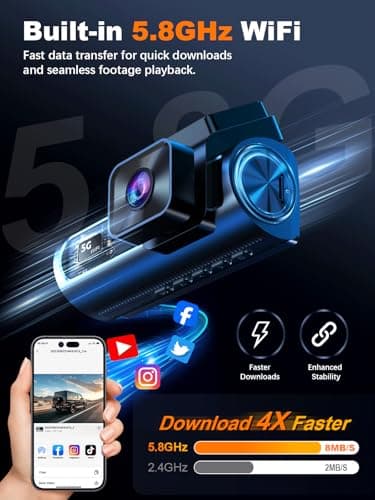 4K Dash Cam Front, Built-in 5.8G WiFi, Free 64GB Card & 48W A+C Car Charger Included, Dash Camera for Cars, Mini Dashcam with Super Night Vision, Loop Recording, G-Sensor, 24 Hours Parking Monitor