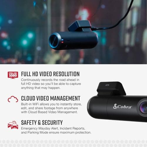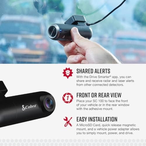 Cobra Smart Dash Cam (SC 100) - Full HD 1080P Resolution, Built-in WiFi & GPS, 140 Degree View, Live Police Alerts, Incident Reports, Emergency Mayday, Drive Smarter App, 8GB SD Card Incl., black