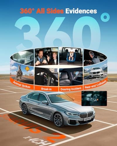 PRUVEEO 360° 4 Channel Dash Cam Front and Rear Inside Left Right, Dash Camera for Cars, Built-in GPS WiFi Night Vision, 24/7 Recording Parking Mode Monitor, 128G Card Included