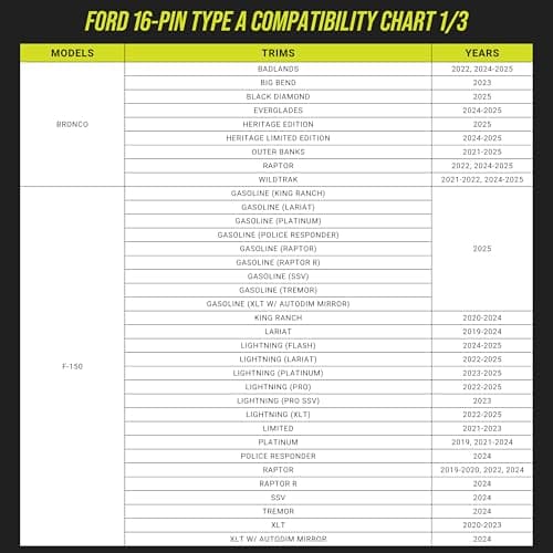 Dongar Dashcam Power Adapter (16-pin Type A) for Ford Vehicles. Compatible with Select Bronco, F150 and More. Built-in USB Power Source, Connects to Rearview Mirror, Easy to Install