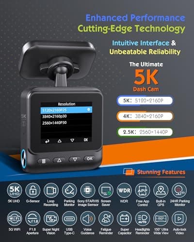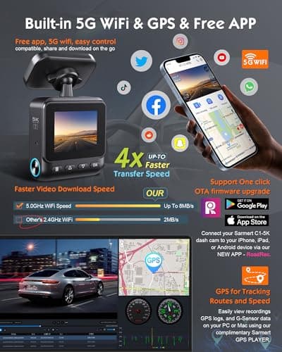 Sarmert C1 5K Dash Cam Front - Built-in GPS and 5G WiFi, Sony STARVIS Sensor, HDR Night Vision Car Camera, 5K/4K/2.5K UHD Dash Camera for Cars, Loop Recording, WDR, G-Sensor, 24H Parking Mode