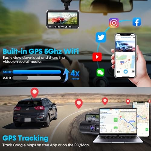FAIMEE 4K Dash Cam Front and Rear with GPS, Upgraded 5.8G WiFi, Dual Dash Camera for Cars, Night Vision, WDR, 160°Wide Angle, 24H Parking Monitor, Emergency Lock, 3" IPS Screen