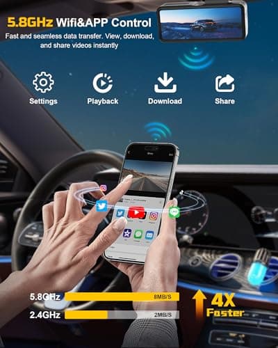 Dash Cam Front and Rear: 4K Dual Channel Dash Cam - 5GHz WiFi, Dash Camera for Cars with 64GB Card, 2" IPS, App Control, G-Sensor, Loop Recording, 170° Wide Angle, Night Vision, 24H Parking Mode