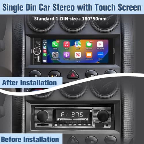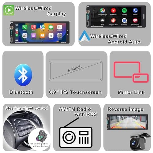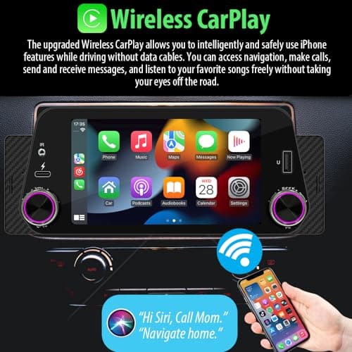 Single Din Radio Car Stereo with Wireless Apple CarPlay,Single Din Touchscreen Radio,Car Radio Bluetooth Support Android Auto,Mirror Link,Car Radio with Backup Camera GPS USB FM/AM EQ MIC (Black)