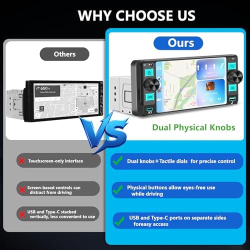 ![[Wireless] 300PPI Ultra-Clear Single Din Car Stereo with Wireless Apple CarPlay/Android Auto, 5 Inch Touchscreen Radio with USB Type-C Fast Charge, Bluetooth Handsfree, Waterproof Backup Camera](/essentials/_next/image?url=https%3A%2F%2Fm.media-amazon.com%2Fimages%2FI%2F41MzV%2BTsCHL._SL500_.jpg&w=3840&q=75)