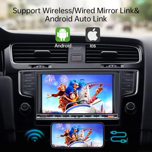 Double Din Car Stereo with Wireless Apple CarPlay & Android Auto, 7inch Touchscreen Car Audio Receiver, Wireless Car Radio with Bluetooth, Backup Camera/Mirrorlink/FM/SWC/Subwoofer/2 USB/AUX Input