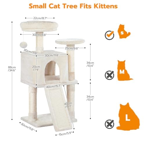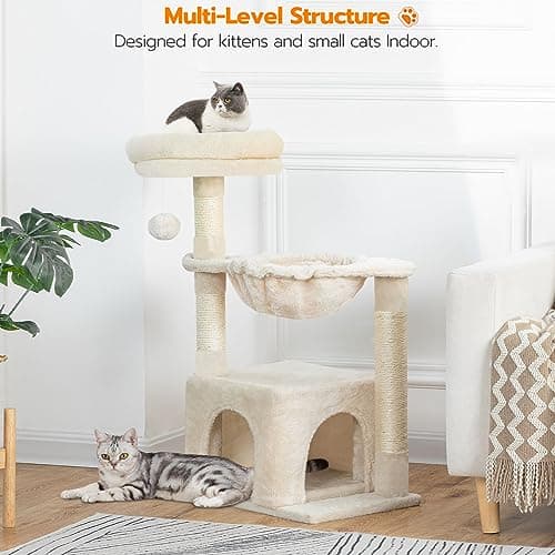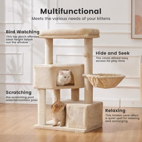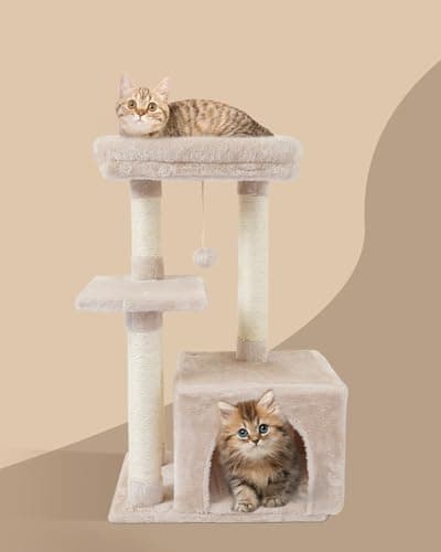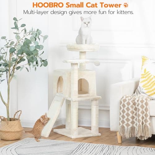 HOOBRO Cat Tree, 34.6-Inch Small Cat Tower with Soft Plush Perch, for Kittens, 3-Tier Cat Condo Furniture with Scratching Posts, with Anti-Tipping Kit, Sturdy, Indoor BE09CT03
