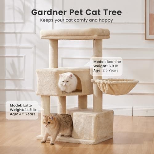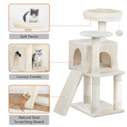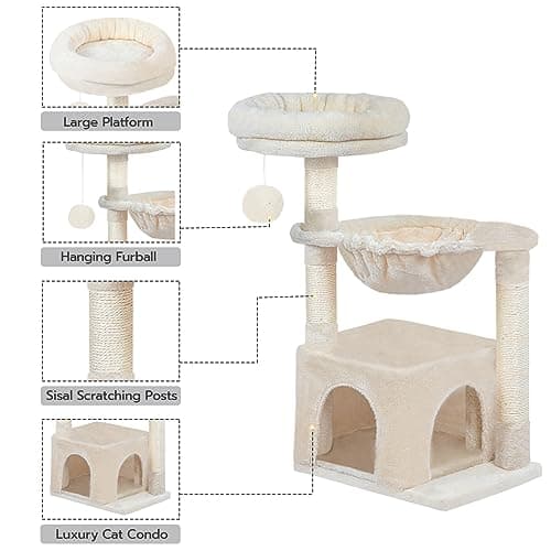 Sweetcrispy 44 Inch Cat Tree Tower, Cat Climbing Tower with Natural Sisal Scratching Posts, Hammock, Pet Condo for Indoor Cats and Kittens Play, Beige
