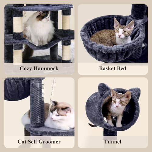 DUMOS 54-inch Indoor Cat Tree Tower –Multi-Level Pet House for Large Cats with 2 Condos, Scratching Posts, Round Platform, Small Ladder, and Toys – Perfect for Cats of All Ages, Dark Grey