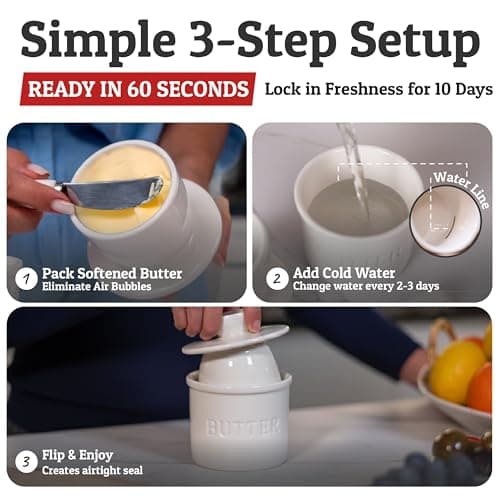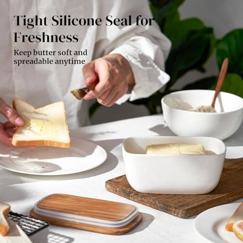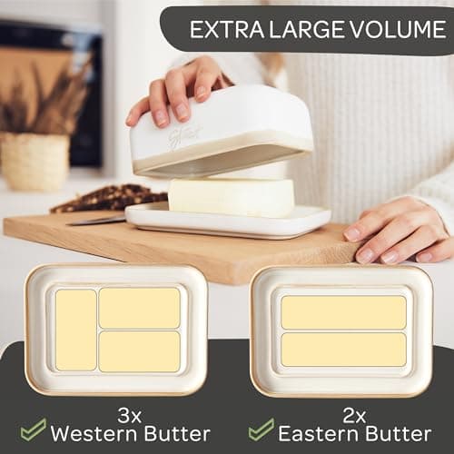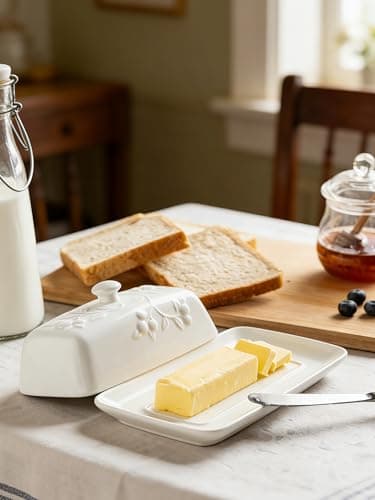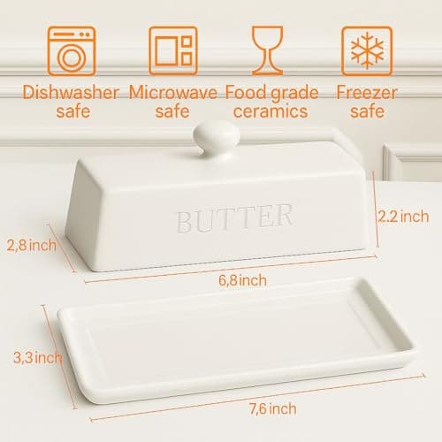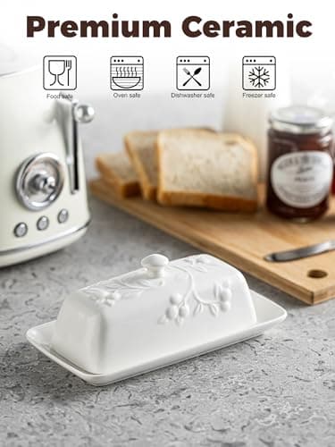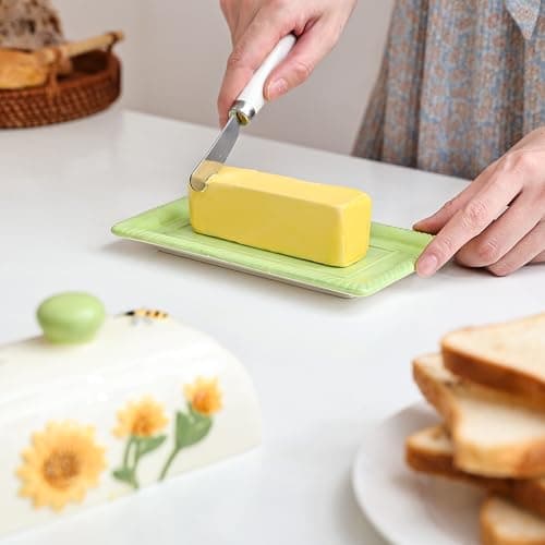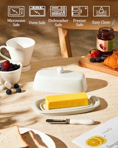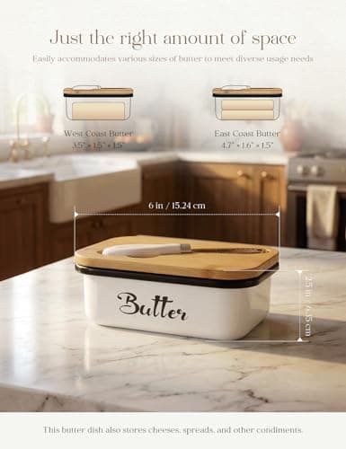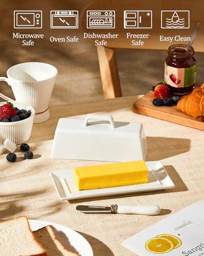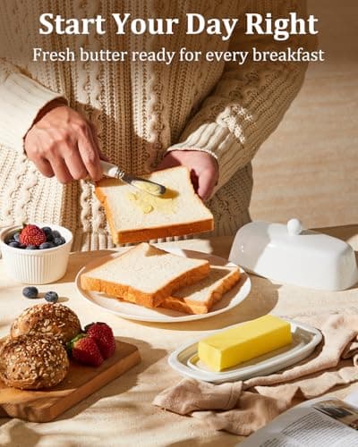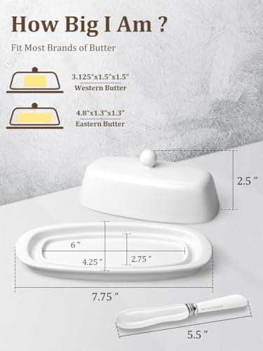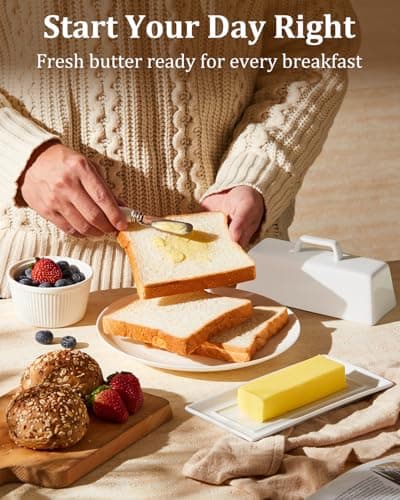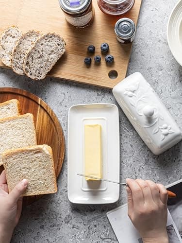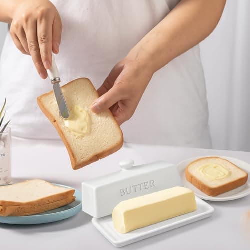 ![Ceramic Butter Dish Set with Lid and Knife - [White]- Decorative Butter Stick Holder with Handle for 1 Stick of Butter - Microwave Safe, Dishwasher Safe - Anti-Scratch Stickers Included](/essentials/_next/image?url=https%3A%2F%2Fm.media-amazon.com%2Fimages%2FI%2F41073qA%2B3TL._SL500_.jpg&w=3840&q=75)