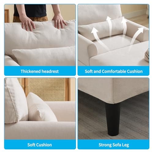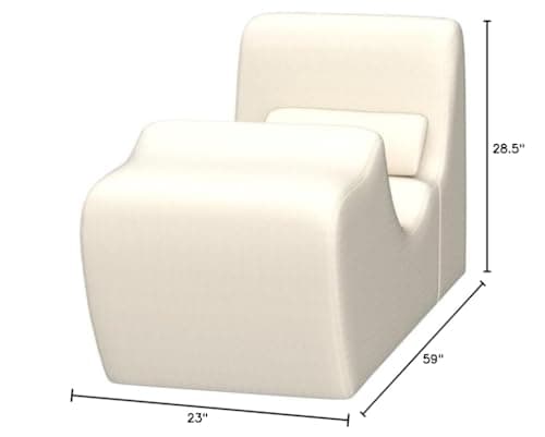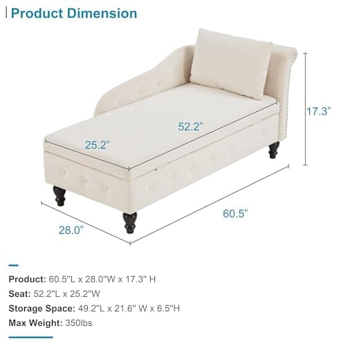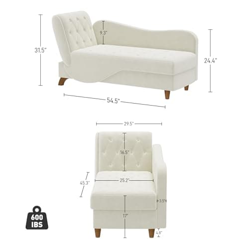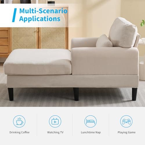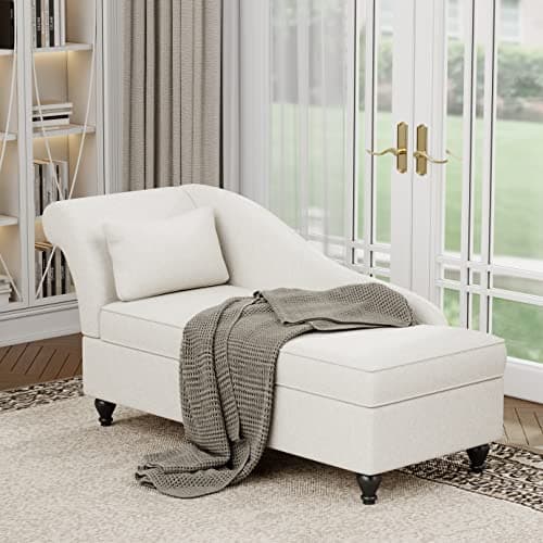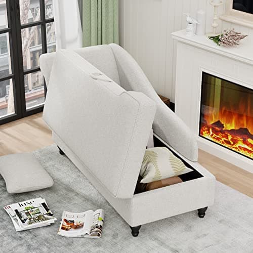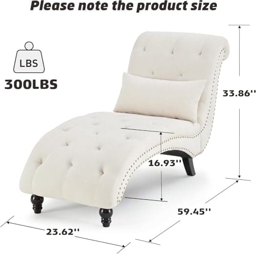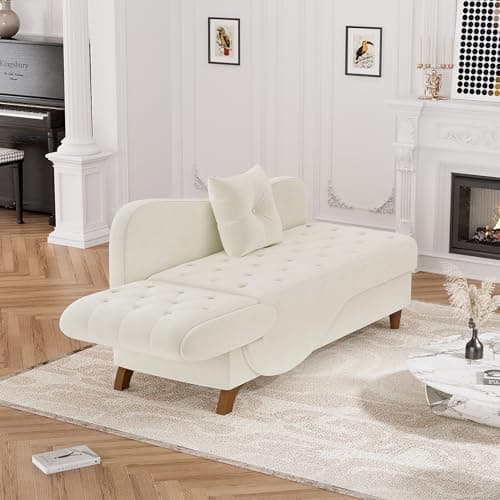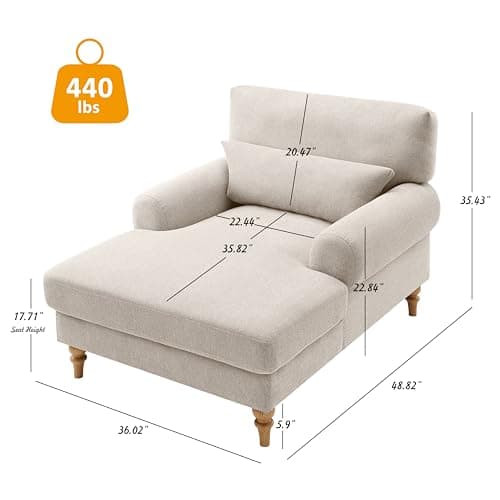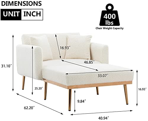 VanAcc 58 Inch Chaise Lounge Indoor, Upholstered Sofa Bed with Throw Pillows and Armrests, Sleeper Chair- Plush Chair Bed for Living Room, Off-White