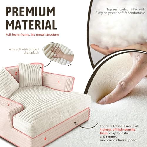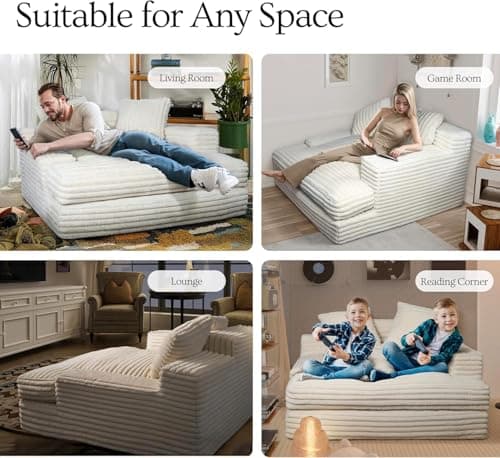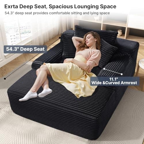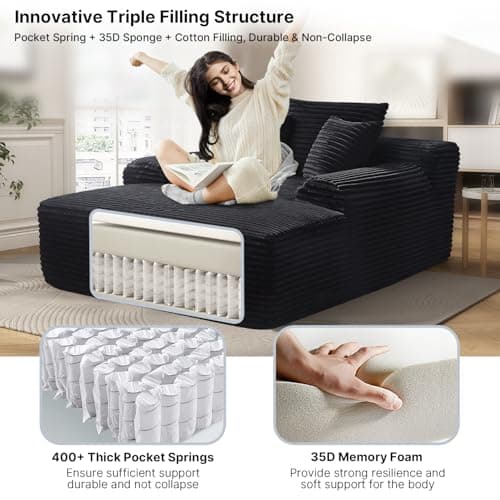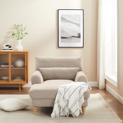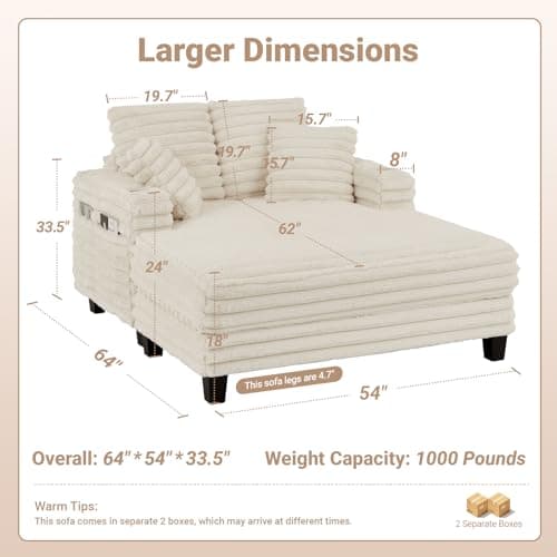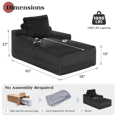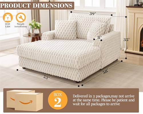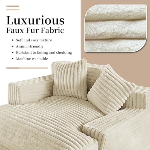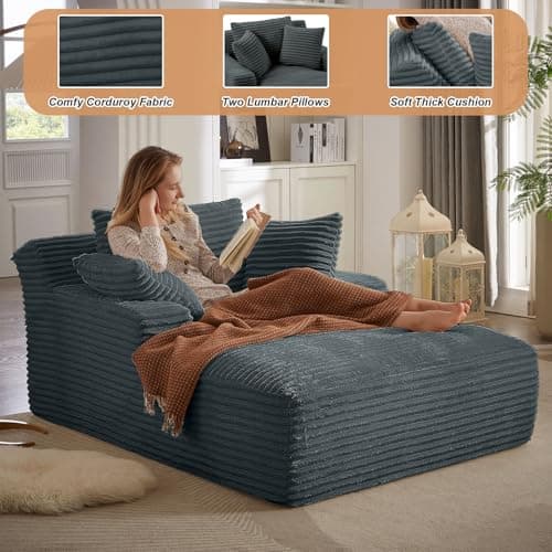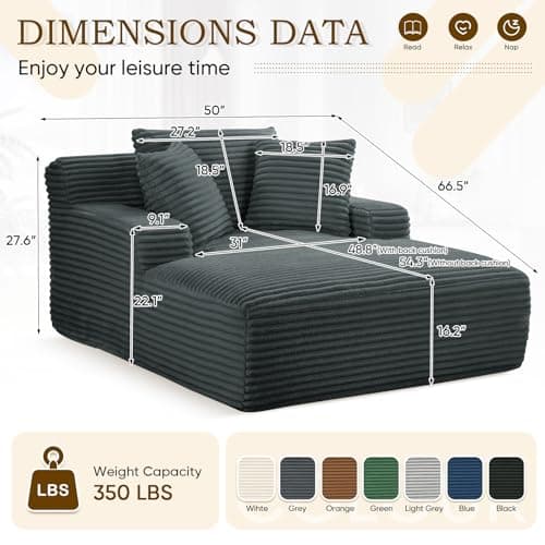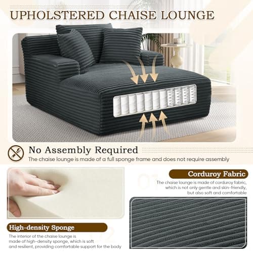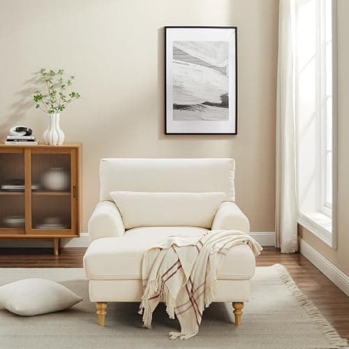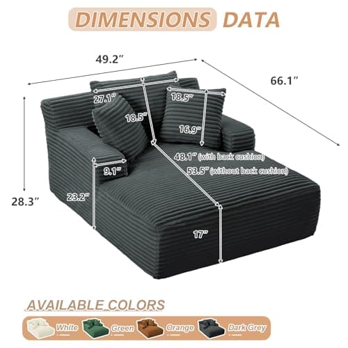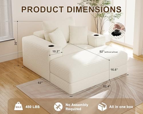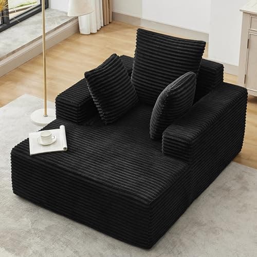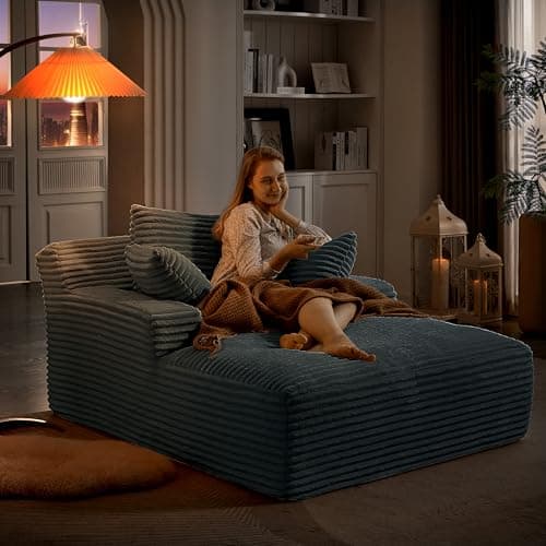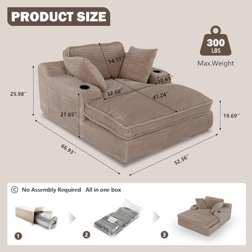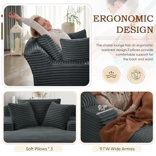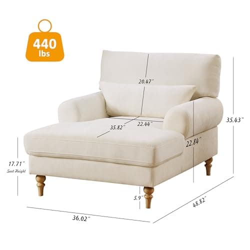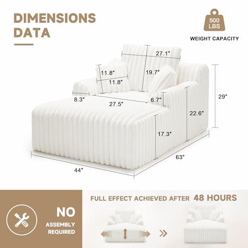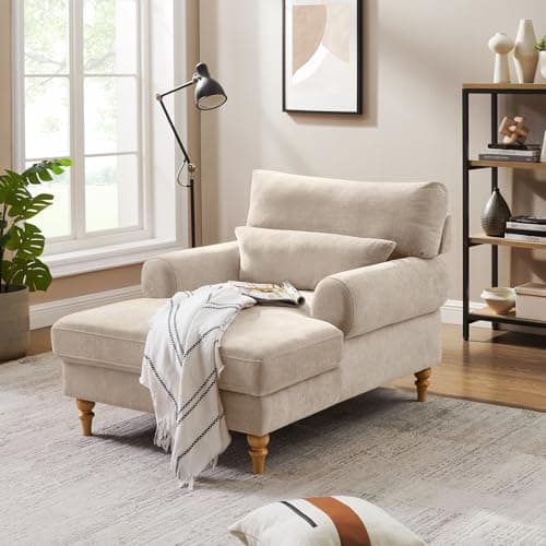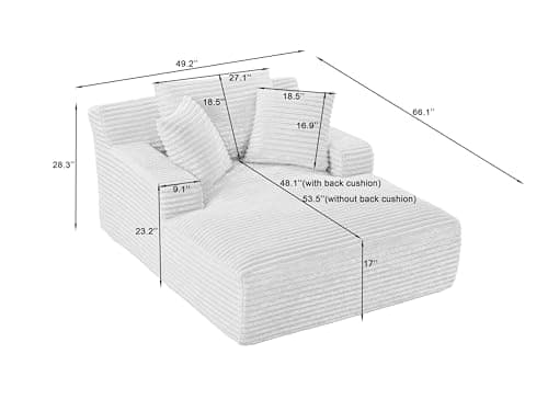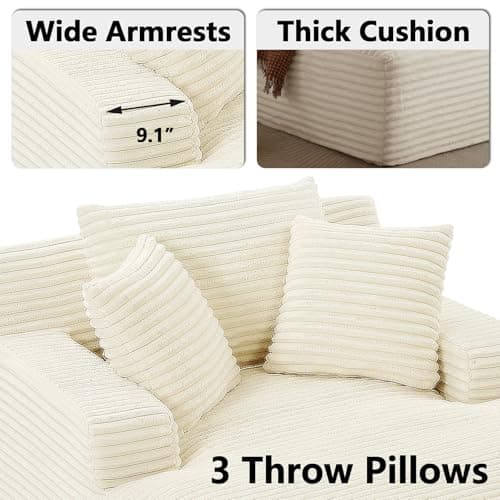 HRVEOCEI 67" Chaise Lounge Indoor, Oversized Chaise Lounge Chair with 3 Comfy Pillows for Living Room Bedroom, Wide Arms Corduroy Fabric High-Density Foam No Assembly Required (White)