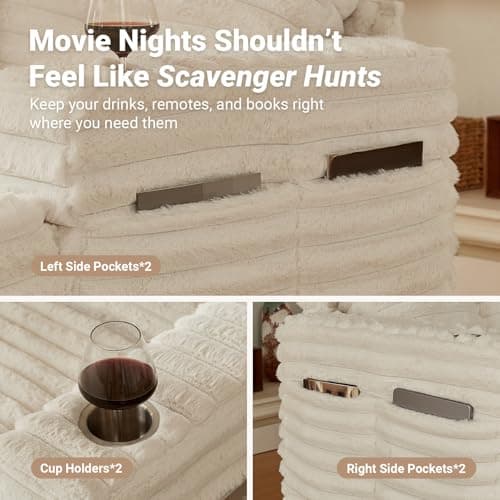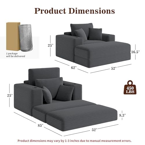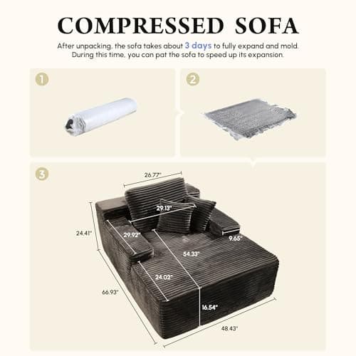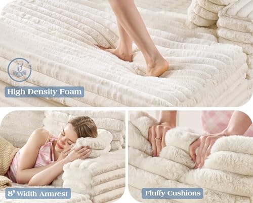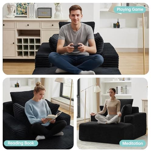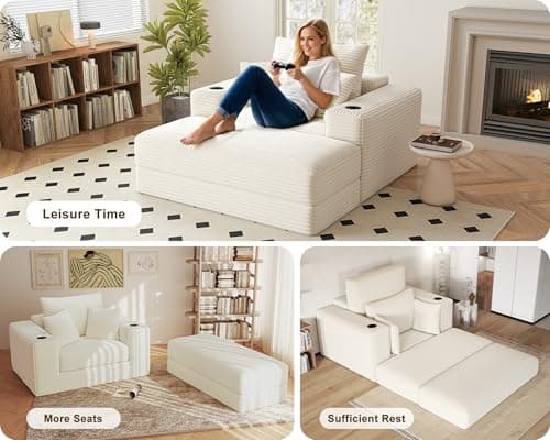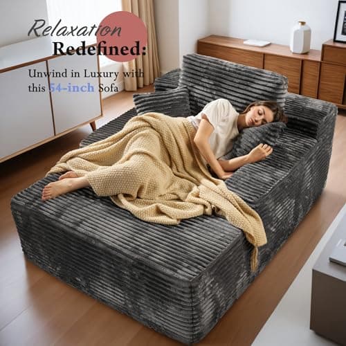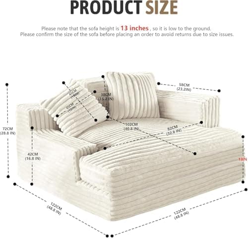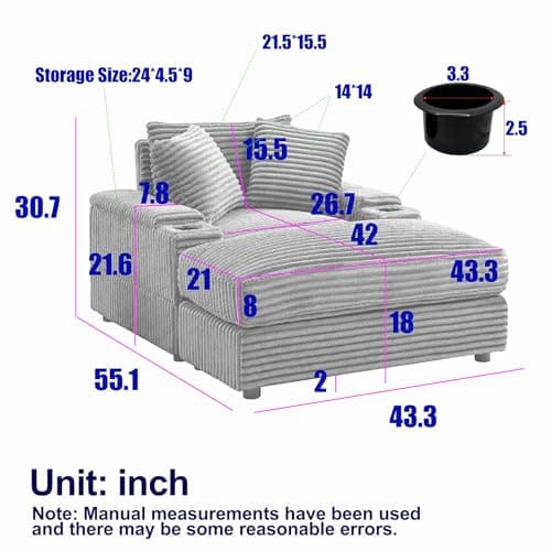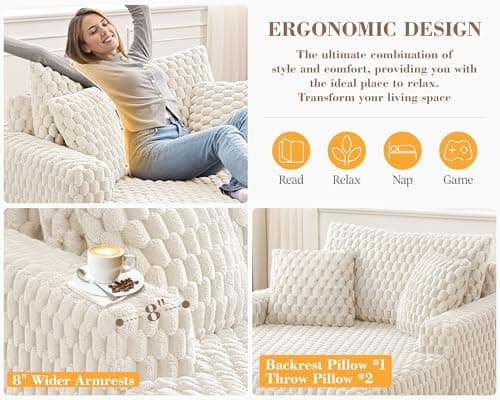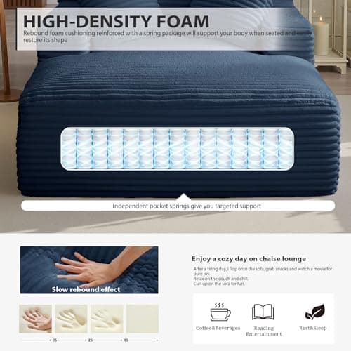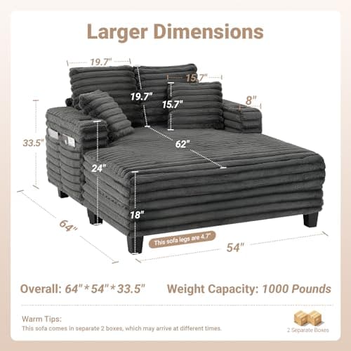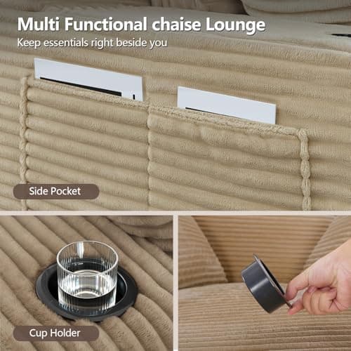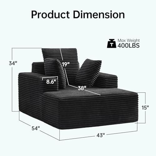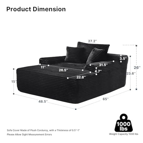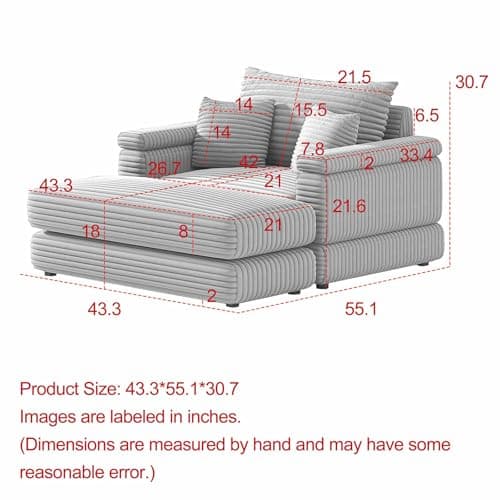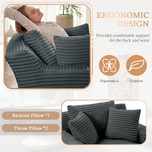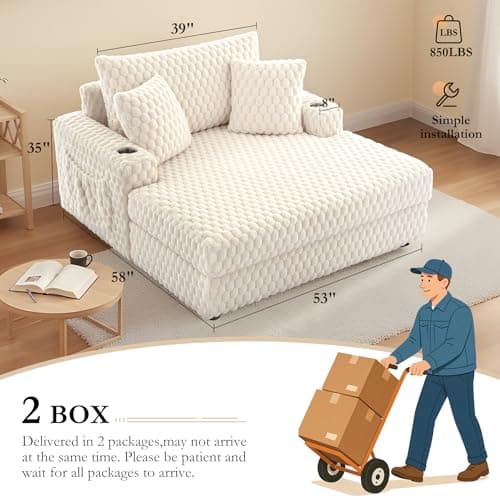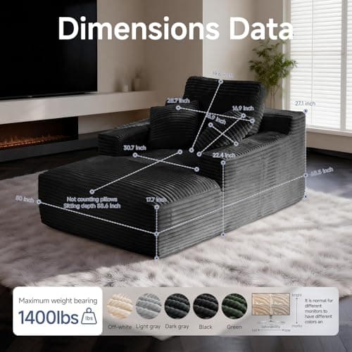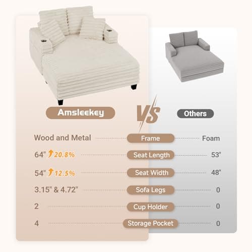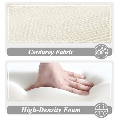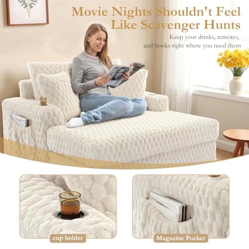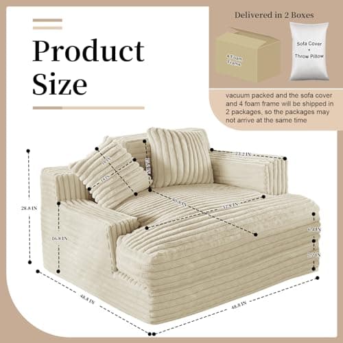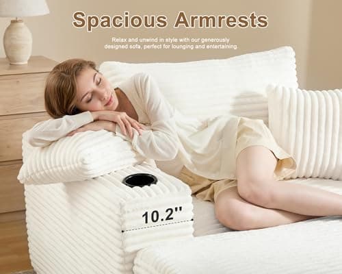 HRVEOCEI 67" Chaise Lounge Indoor, Oversized Chaise Lounge Chair with 3 Comfy Pillows for Living Room Bedroom, Wide Arms Corduroy Fabric High-Density Foam No Assembly Required (White)