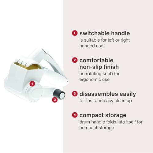 Zyliss Classic Rotary Cheese Grater - NSF Restaurant Certified Handheld Grater - Can be used for Hard Cheese, Chocolate & More - With Comfortable Handle & Easy-to-Clean Drum - White