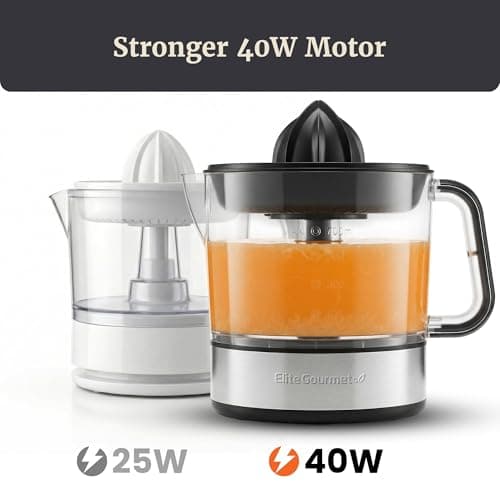 Elite Gourmet ETS623 BPA-Free 40-Watt Electric Citrus Juicer, Compact, Large Volume, Pulp Control, Oranges, Lemons, Limes, Grapefruits with Easy Pour Spout, 24oz, Black/Stainless Steel