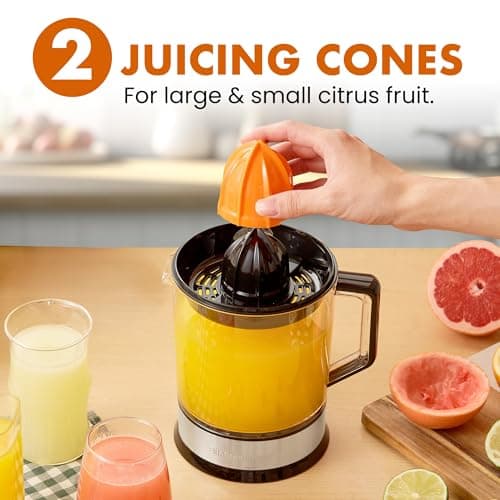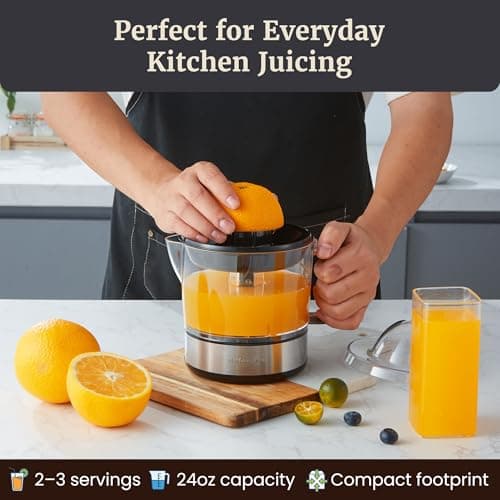 Citrus juicers split into a few clear shopping lanes. The biggest divide is operation mode: electric countertop juicers fit shoppers who want a stable pitcher-and-spout setup, while rechargeable portable juicers make more sense for travel, small kitchens, or occasional single-serve use. A smaller but useful middle lane is the low-effort juicing route for buyers who want hands-free or pressure-activated use.