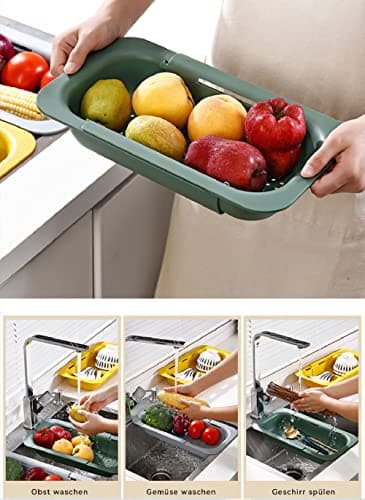 Qimh Colander collapsible, Colander Strainer Over The Sink Vegetable Fruit Strainer Basket (6 Quart) with Extendable Handles, New Kitchen Essentials