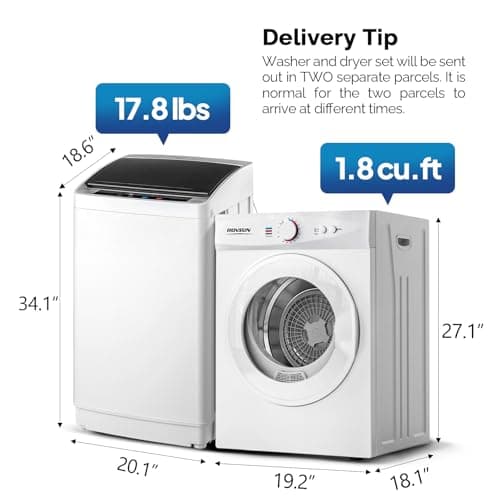 ROVSUN 1.8CuFt Portable Clothes Dryer and 17.8LBS Full-Automatic Washing Machine Set, Compact Laundry Washer and Dryer Combo Set with Stainless Steel Inner Tub, for Apartment, Dorms, Home