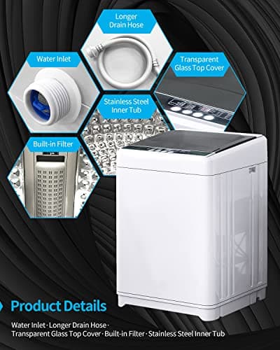 TABU Portable Washer and Dryer Combo, 17.6LBS Full-Automatic Washing Machine with Drain Pump & Compact 13LBS Dryer with Stainless Steel Inner Tub(White)