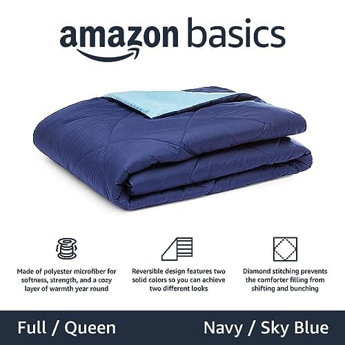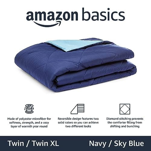 Amazon Basics Washable Comforter Blanket, Reversible Lightweight Microfiber All Season, Twin/Twin XL, Navy/Sky Blue