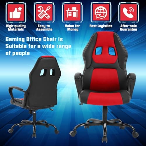 Gaming Chair PC Computer Chair Office Chair for Adult Teen Kids, Ergonomic PU Leather Gamer Chair with Lumbar Support High Back Adjustable Rolling Swivel Desk Chair, Red