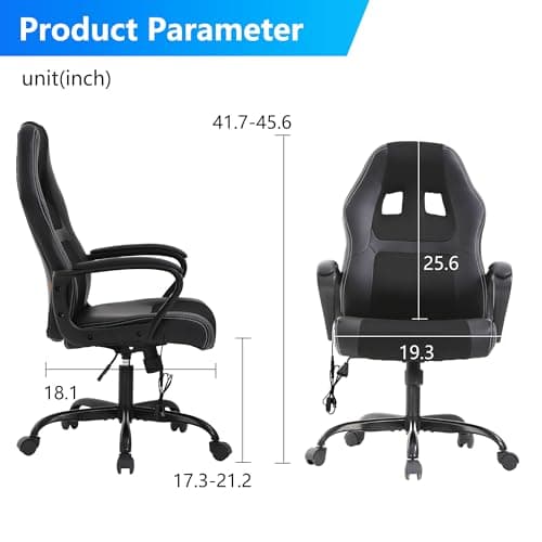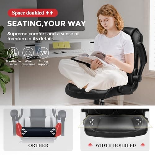 DUMOS Ergonomic Computer Gaming Chair - Home Office Desk with PU Leather Lumbar Support, Height Adjustable Big and Tall Video Game with Flip-up Armrest, Swivel Wheels for Adults and Teens