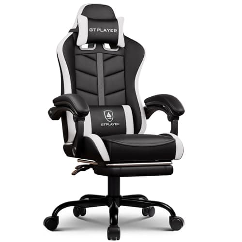 GTPLAYER Gaming Chair, Computer Gaming Chairs for Adults with Footrest, Height Adjustable PC Game Chair with 90-155° Recline & Removable Headrest Lumbar Support, Black-White