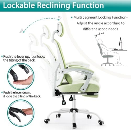 DUMOS Office Desk Chair with Footrest Ergonomic Gaming Chair for Adults Computer Mesh, Lumbar Support,Swivel Reclining with Headrest, Comfy Armrest for Home, Office, Work, Study, Light Green