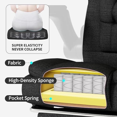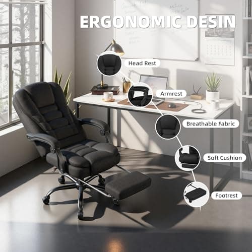 Fabric Office Task Chair- Computer Ergonomic Desk Chair- High Back Executive Chairs Height Adjustable with Footrest Lumbar, 360° Swivel Gaming Office Desk Chair with Flip-up Armrest for Adult, Black