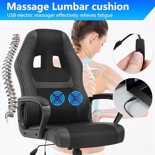Dowinx Gaming Video Gaming Chair with Shiatsu Neck Massage and Lumbar Support for Home Office High Back Recliner Height Adjustable Ergonomic Comfy Leather Computer Desk Chair (Black)